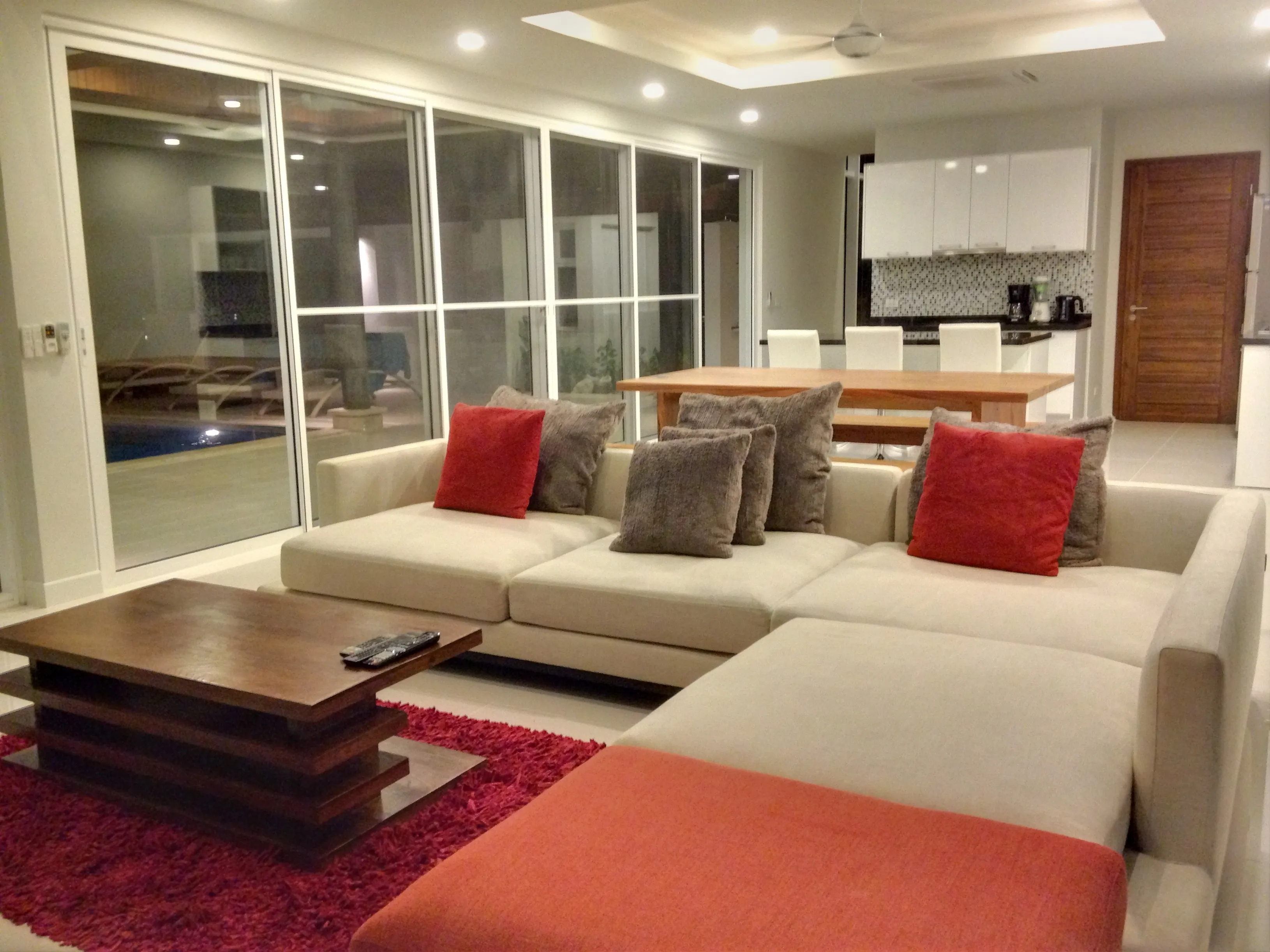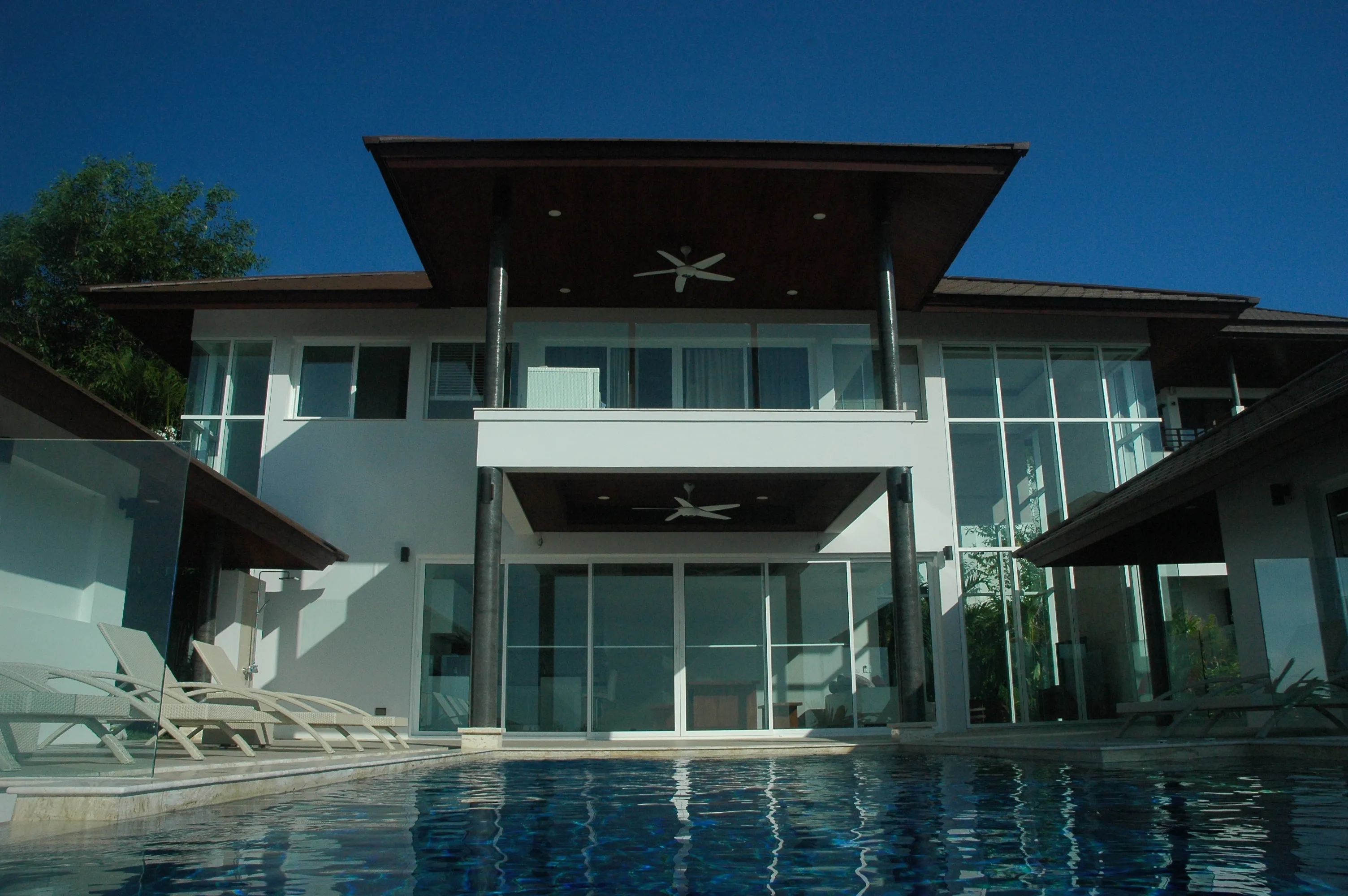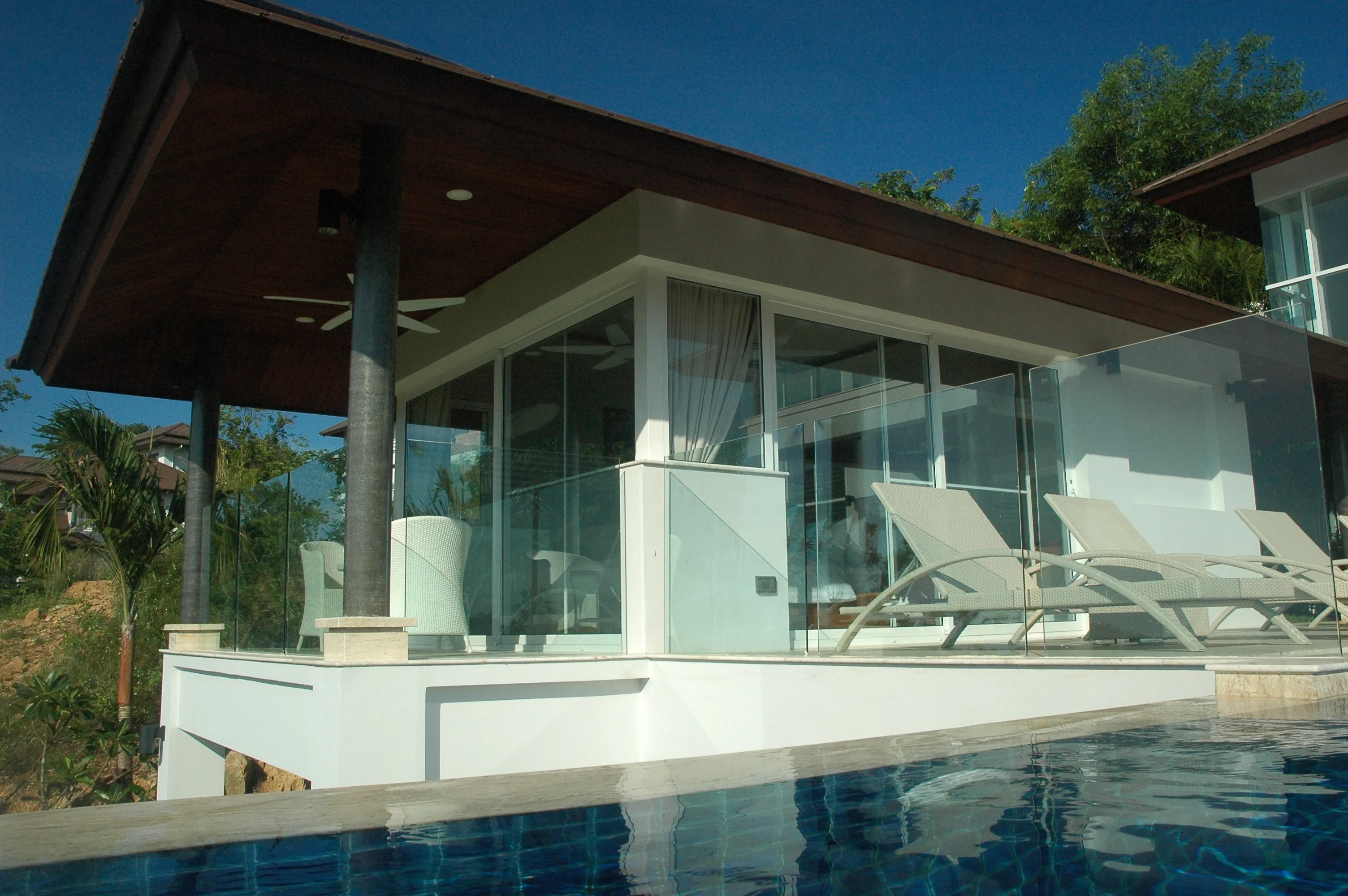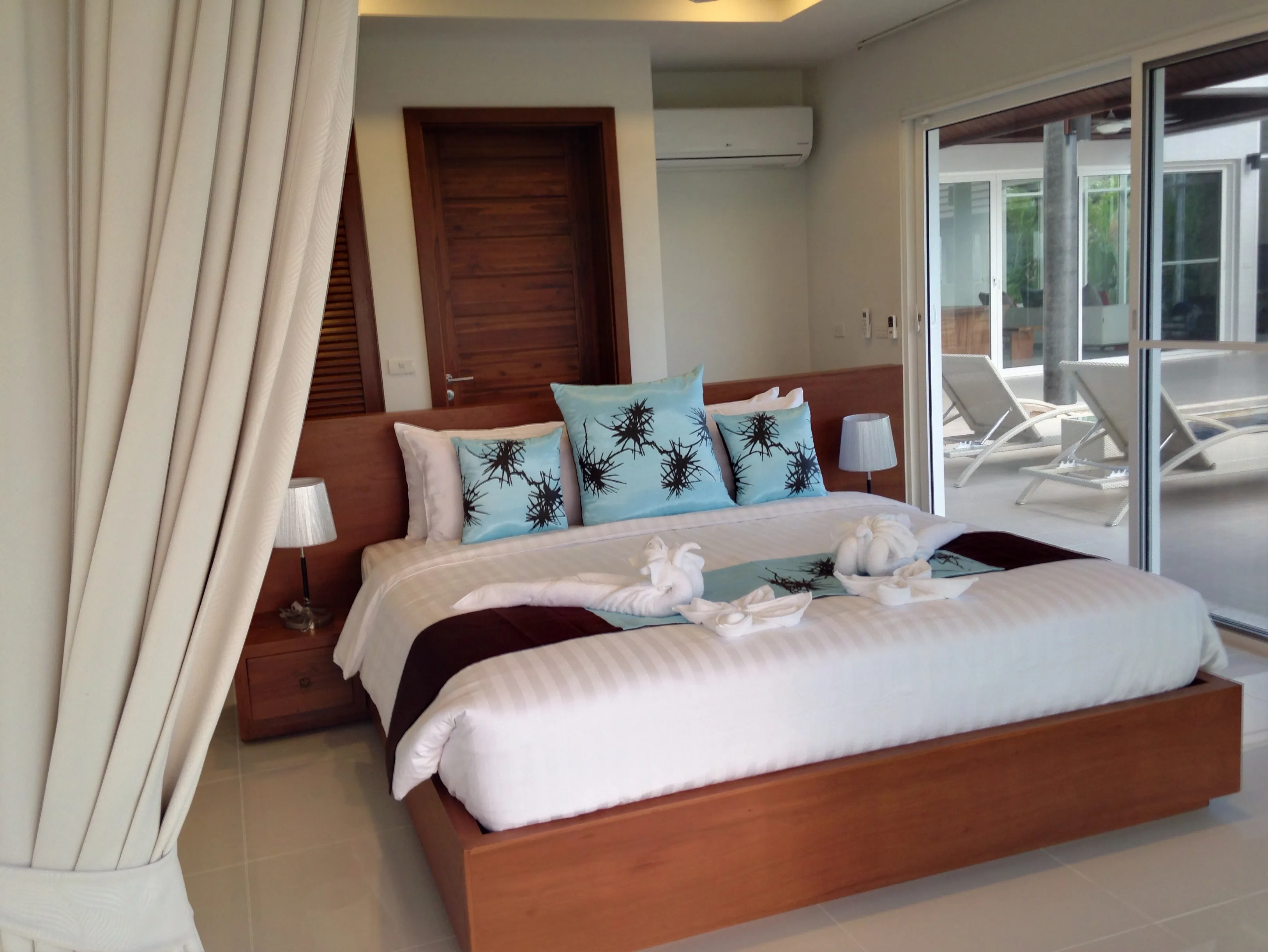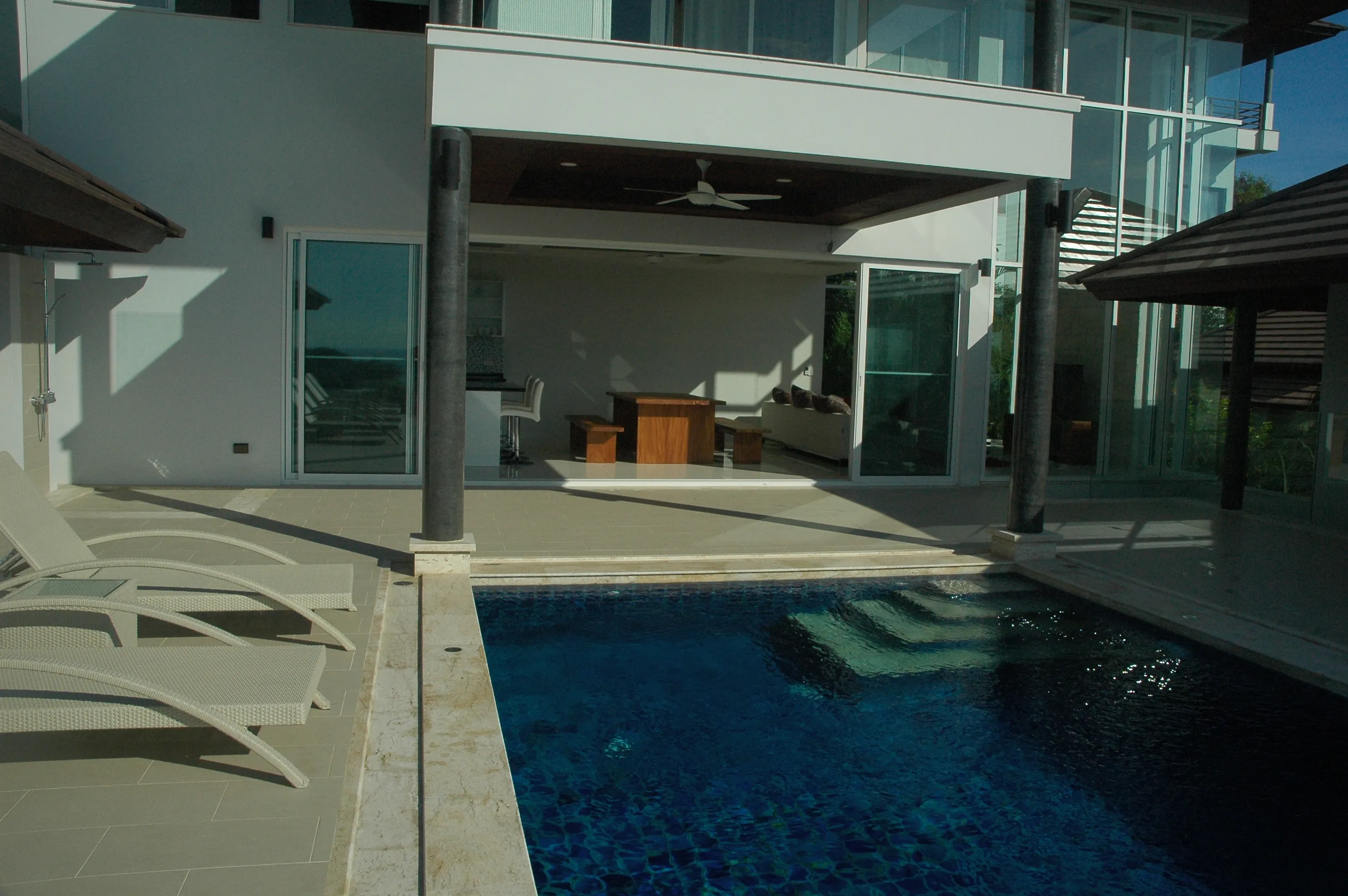 Going up to the 2nd level you will find the pool area, with bedrooms each with king size beds and their own private bathrooms.