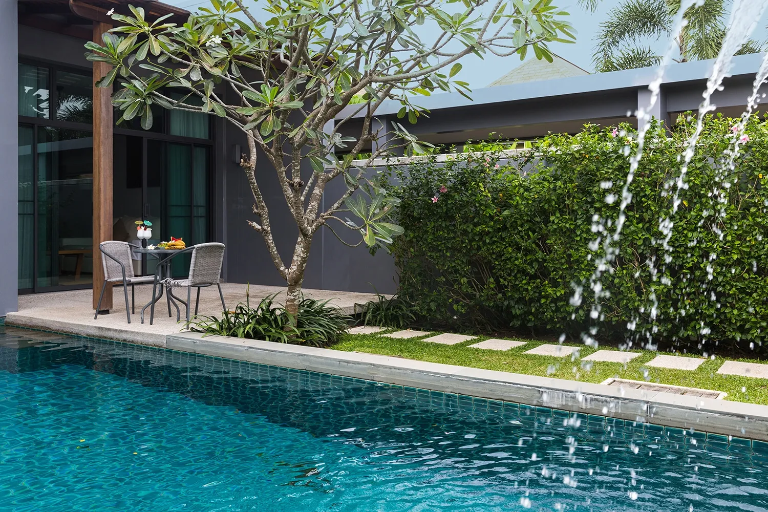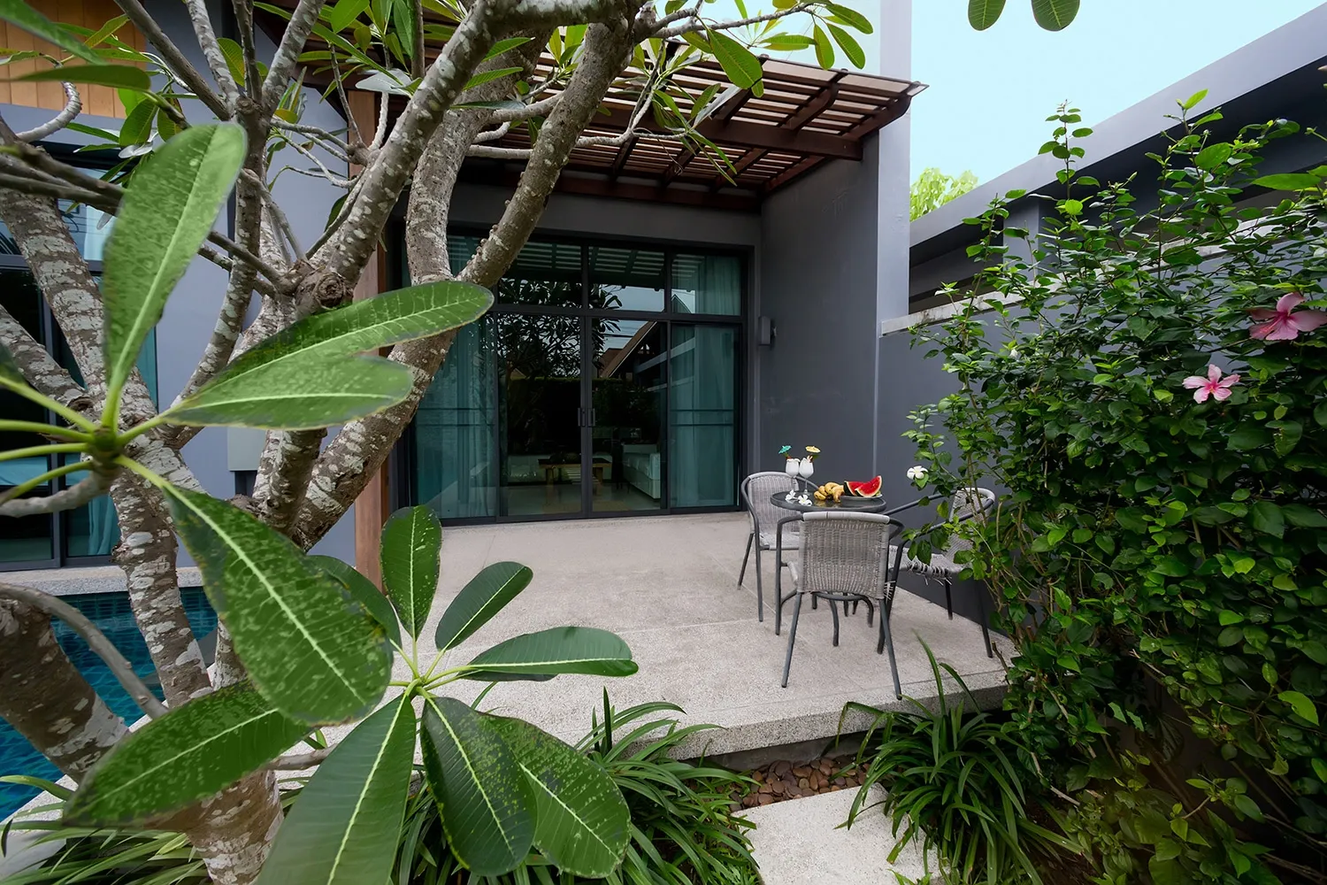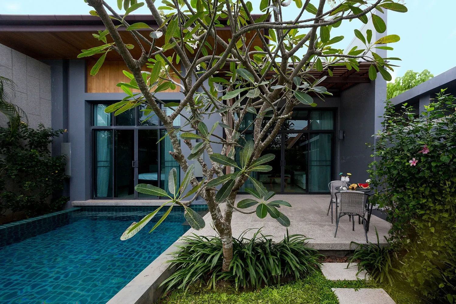 With lush tropical outdoors and cosy, minimalist indoors, villa Epa is a modern, stylish home exemplifying high degree of comfort, convenience and enjoyment. Immerse yourself in the eight-meter swimming pool, lounge leisurely in the covered terrace, enjoy barbecue and pool parties in the cool of the evenings, or venture out to the white-sand Nai Harn beach to swim to your heart’s content.