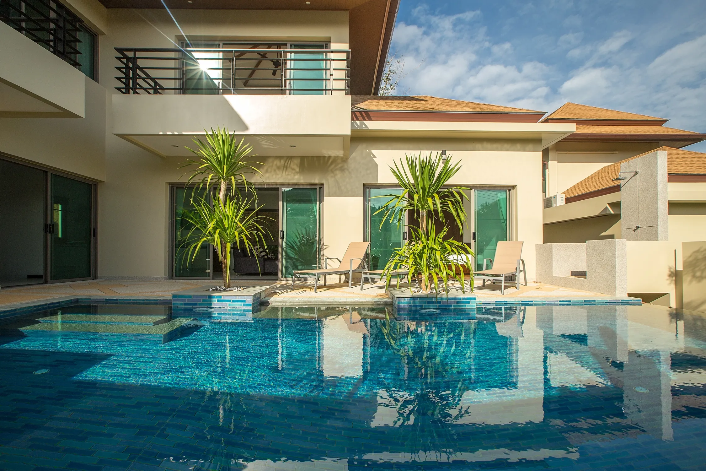 Set in a private villas compound 3-minute drive from Naiharn Beach. Nai Harn is a worldwide known, Phuket most popular area. There are only a few hotels in this tranquil area and it is a beautiful anchorage for yachts during the high season. Ideal for swimming from November to June. You can find many local & international restaurants in a 3 min walking distance (Thai, French, German, Italian, Swiss and many others), as well as local food markets, 24/7 mini-markets, different banks offices and ATMs, massage salons etc. Most local expats choose Naiharn area as their new permanent home.