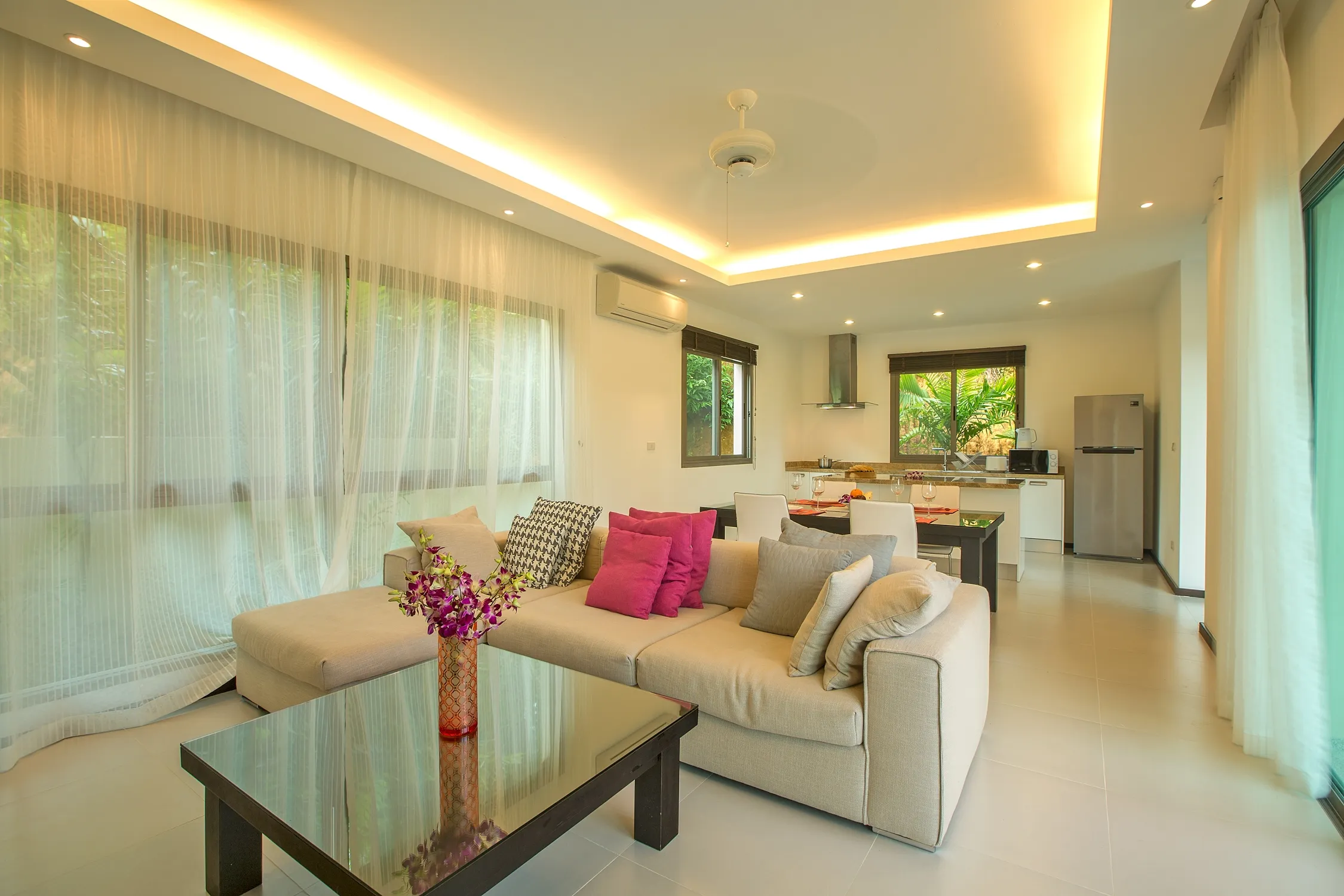 • Living area with sofas and pop-up LCD TV
