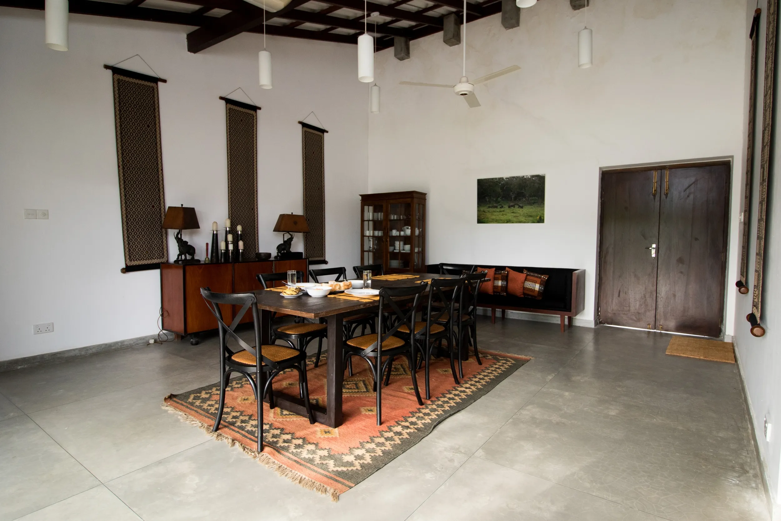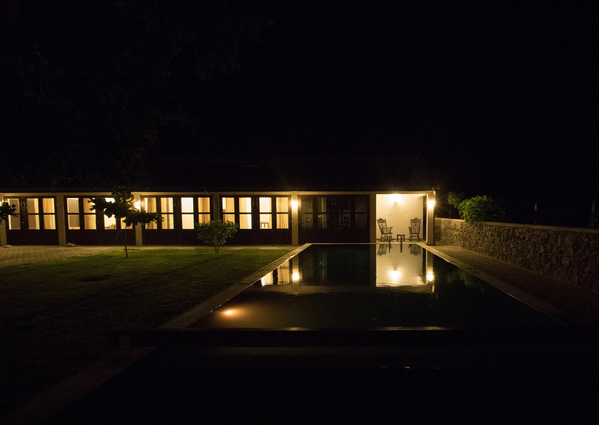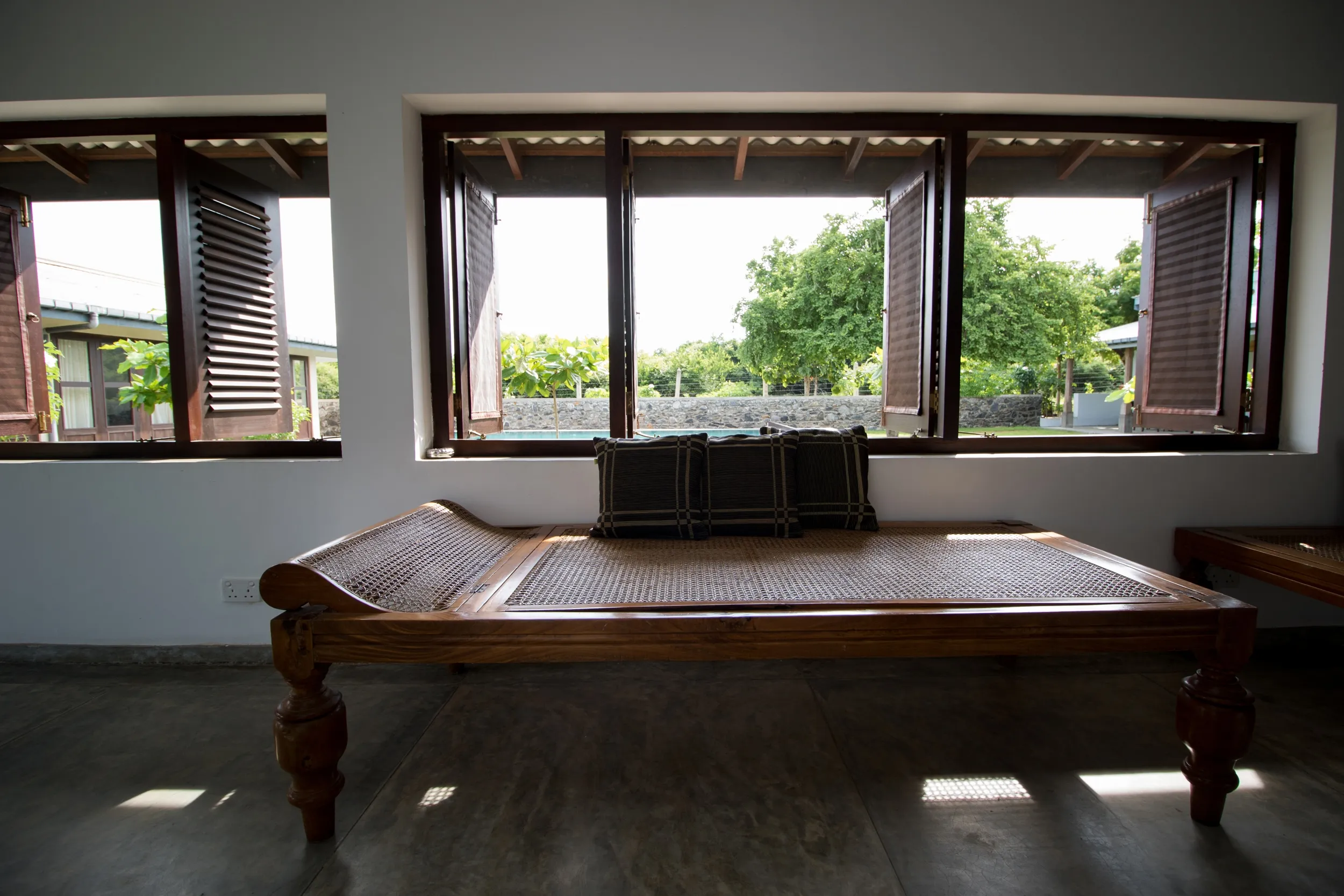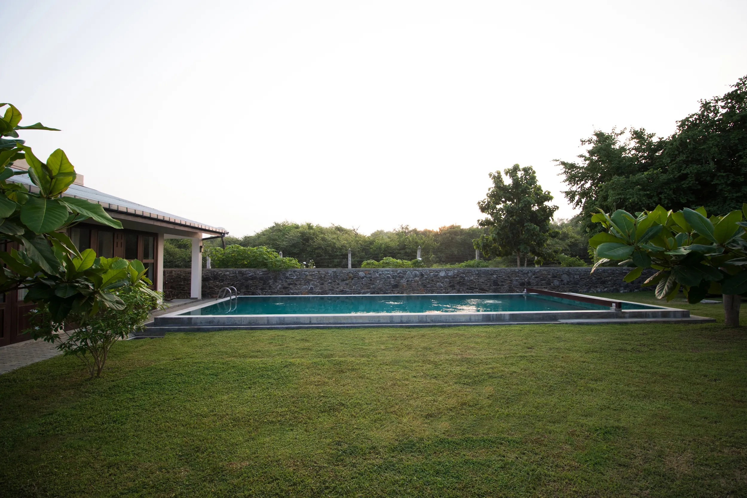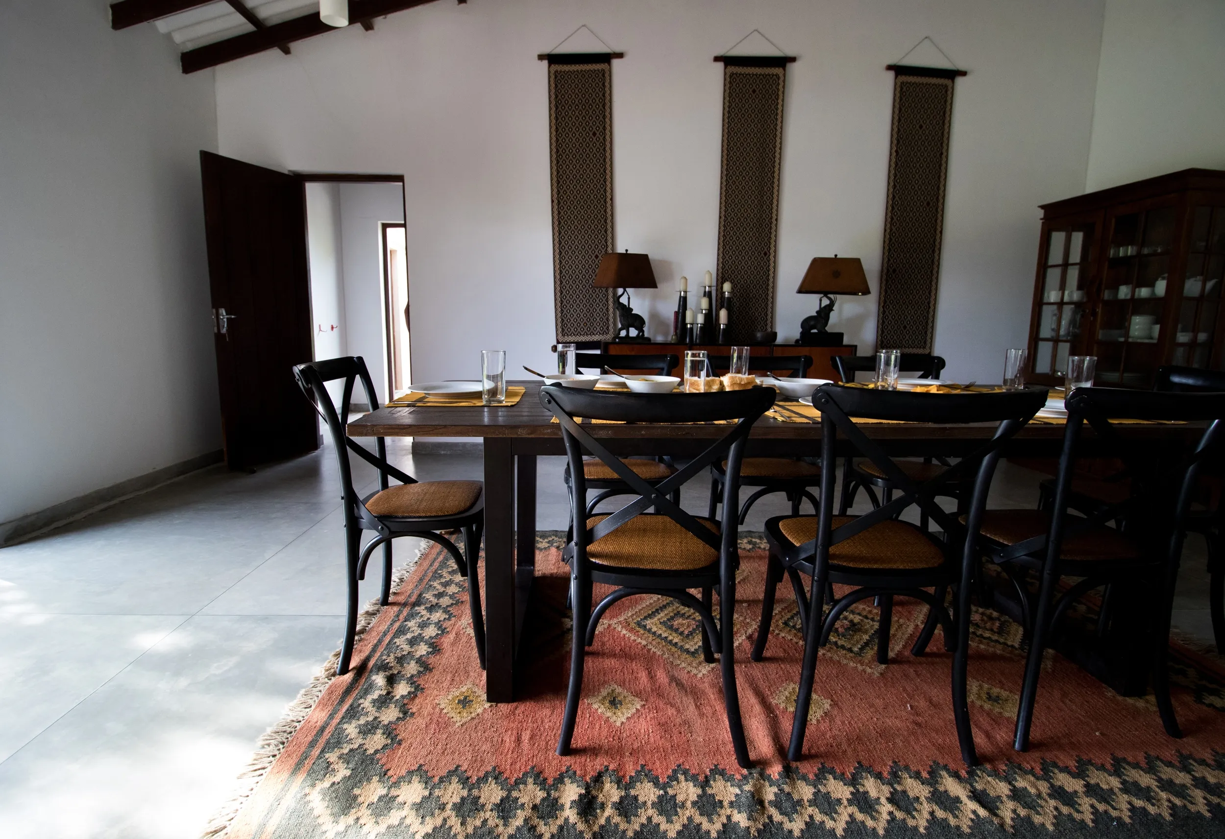 So open that closing your eyes will make you believe you’re in the middle of the jungle. Bird songs by day and the rustle of leaves as elephant forages by night and always, the strong thirsty winds of this dry zone pass gently through. Makes the veranda idyllic for pitching extra beds to sleep the deep nights in. Three simply furnished comfortable bedrooms with en suite bathrooms promising dreamful sleep only disturbed by peacock calls.